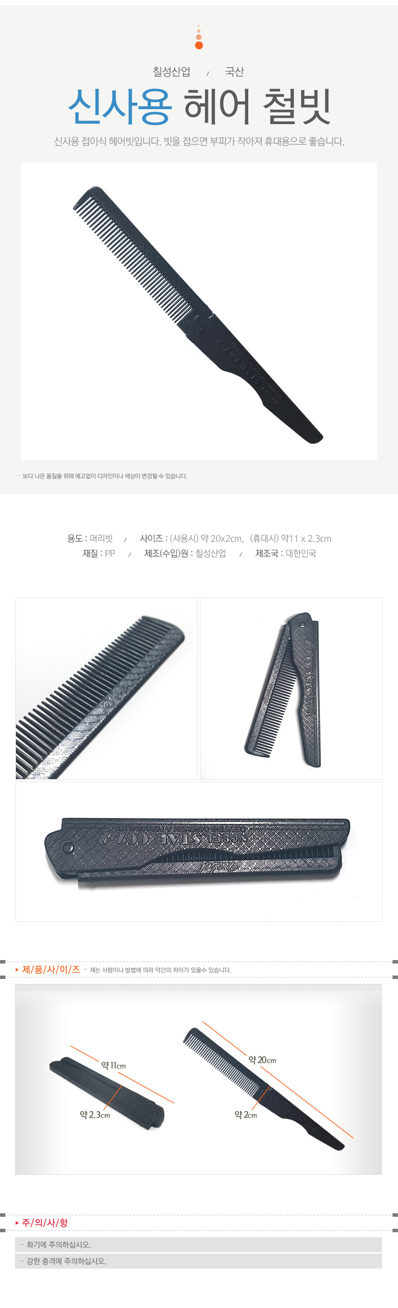 칠성 1+1 신사용 절빗 (블랙)휴대 헤어 접이식 머리빗