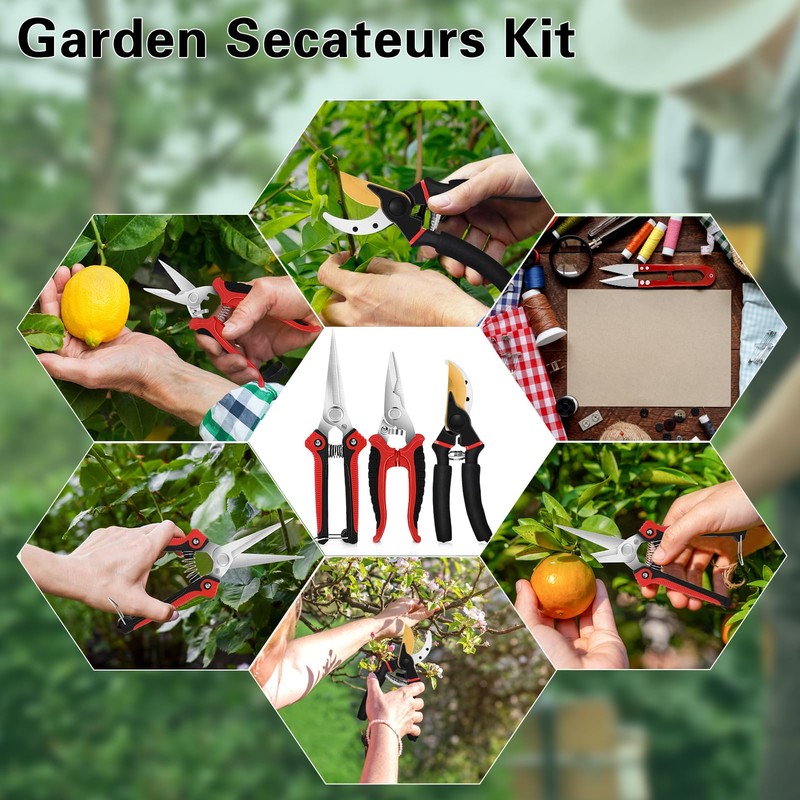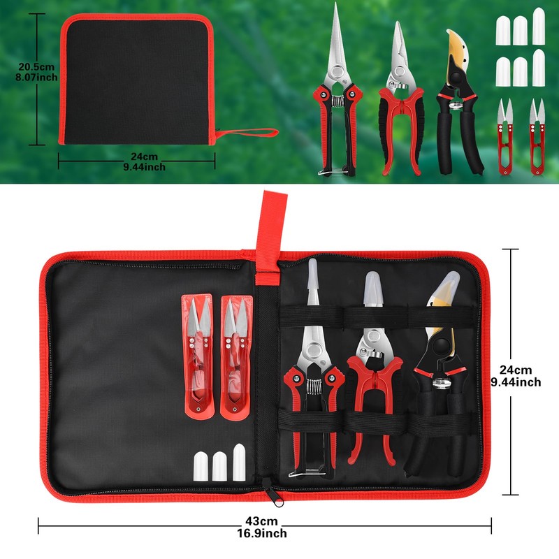 Chilymes 5 Pack garden trimmer set scissors, EVA cotton aluminum handle scissors, stainless steel sharp cutting pliers, garden trimmer scissor set, with storage bag