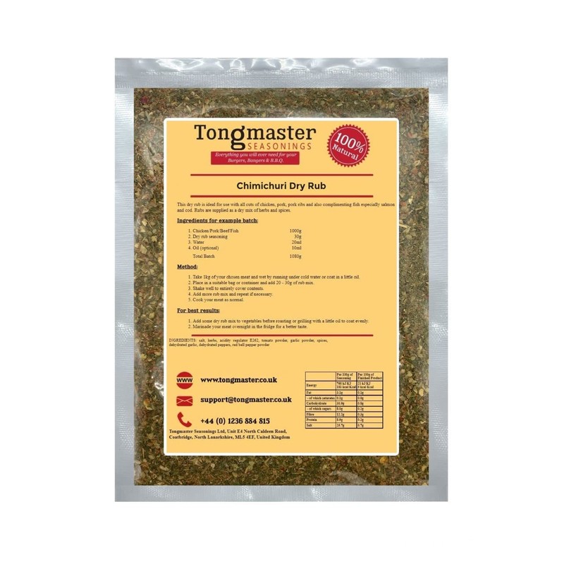 • This dry rub is ideal for use with all cuts of chicken, pork, pork ribs and also complimenting fish especially salmon and cod. Rubs are supplied as a dry mix of herbs and spices.