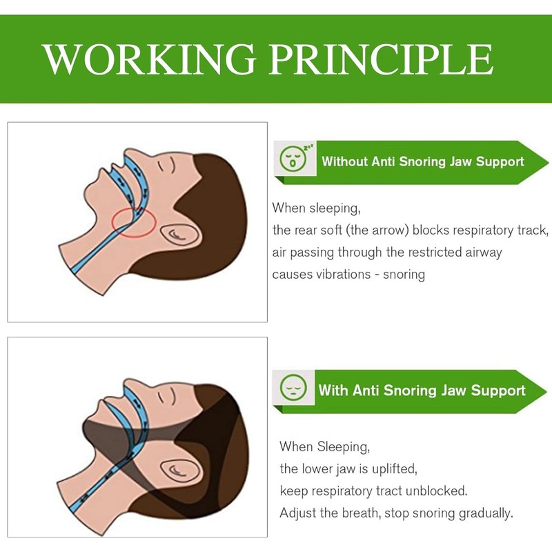- Improving Life: Our anti snoring chin can reduce your snoring and help you and your partner improve your life. The snoring chin strap is convenient to use, just place it under the chin and comfortably around the head and ears. Make sure you don't snore all night.