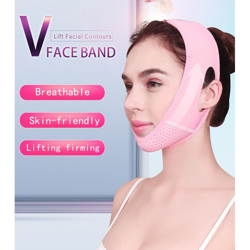 - Chin Strap Pink for Sleeping and Double Chin Reducer - SXBBSMC face lifting strap features breathable fabric with 3D contouring design, offering overnight comfort while gently tightening loose skin