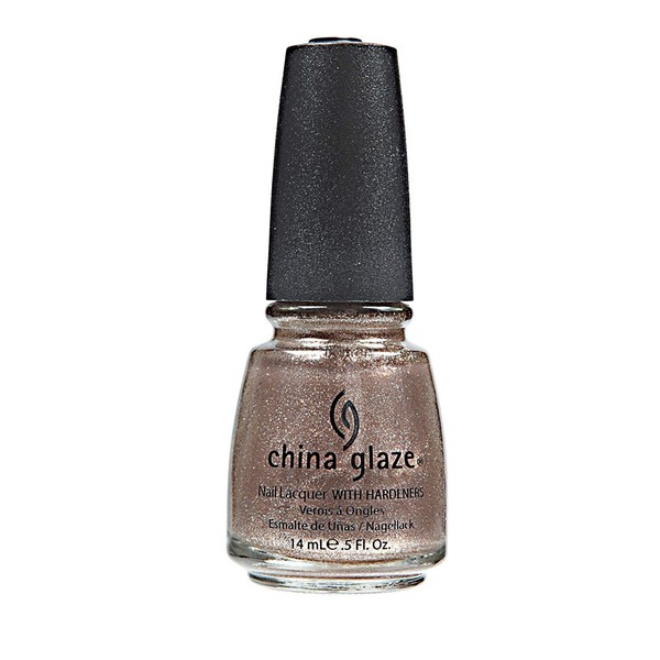 - Metallic champagne taupe nail color with silver micro-glitter and a foil finish