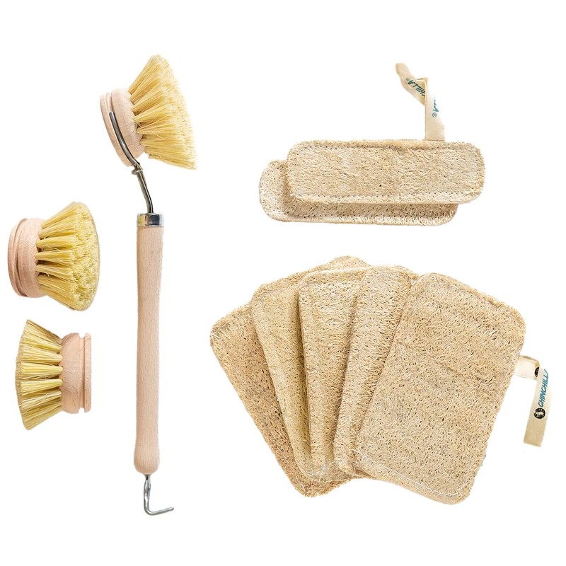 - Sustainable and plastic-free: the set of washing up brush and loofah sponges from Chinchilla is the plastic-free and environmentally friendly alternative to cleaning utensils made of plastic
