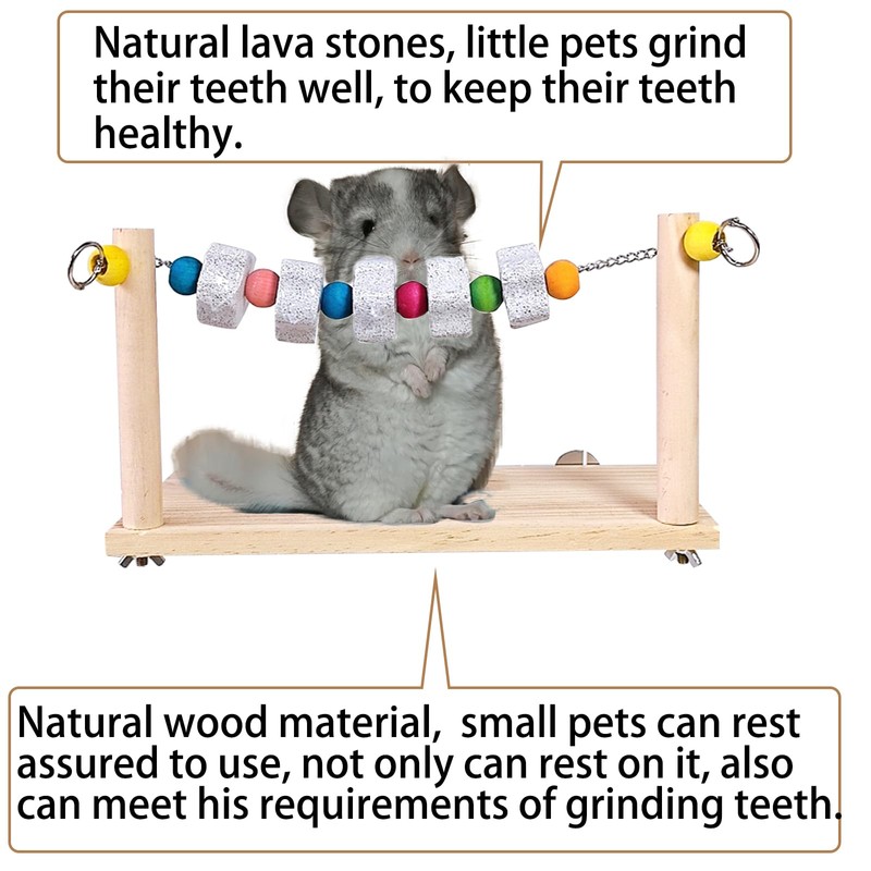 - 【Multi-functional Hamster Platform】Our platform not only allows pets to climb and play but also to grind teeth for small animals. Pets can chew while playing, satisfying their natural biting nature. The wooden platform of natural lava stone is ideal for chewing animals. When pets run out of chew stones, buy them new ones and tie them to our platform with a rope so they can continue to use them