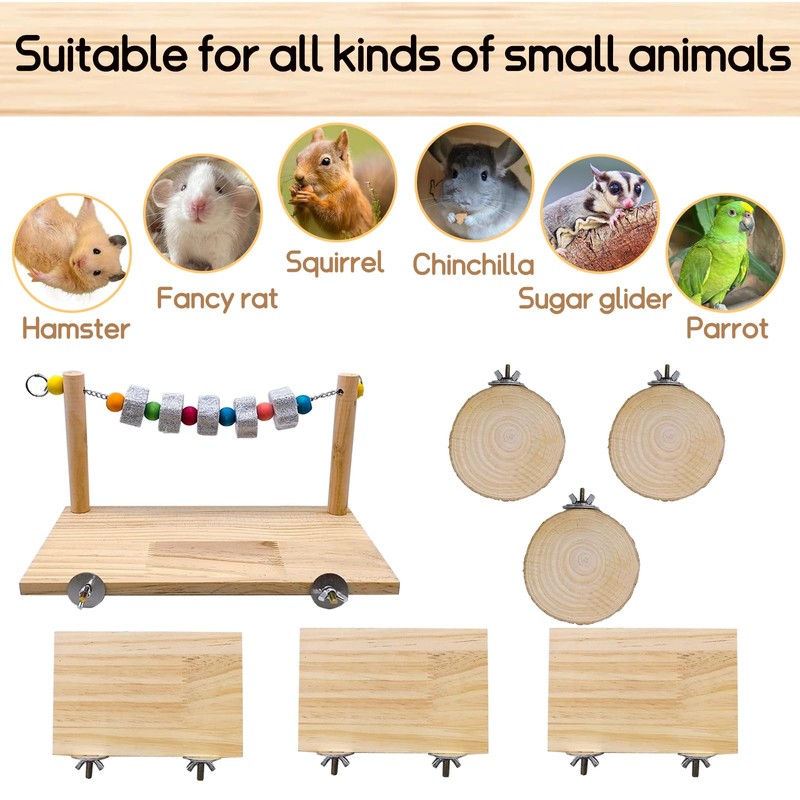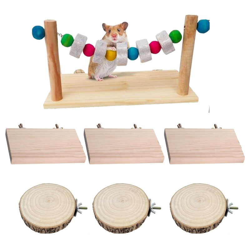 - 【Easy to Install and Suitable for All Kinds of Small Animals】Our hamster wooden platform comes with metal nuts and built-in bolts, easy to install in the cage, whether you have hamster, gerbil, fancy mouse, chinchilla, honey glider or parrot, our climbing toys are suitable for all kinds of small animals.
