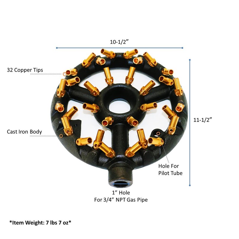 Chinese Wok Range 32 Tips Jet Burner, Copper Tips, Cast Iron Body, Natural Gas WR-JBR32NG