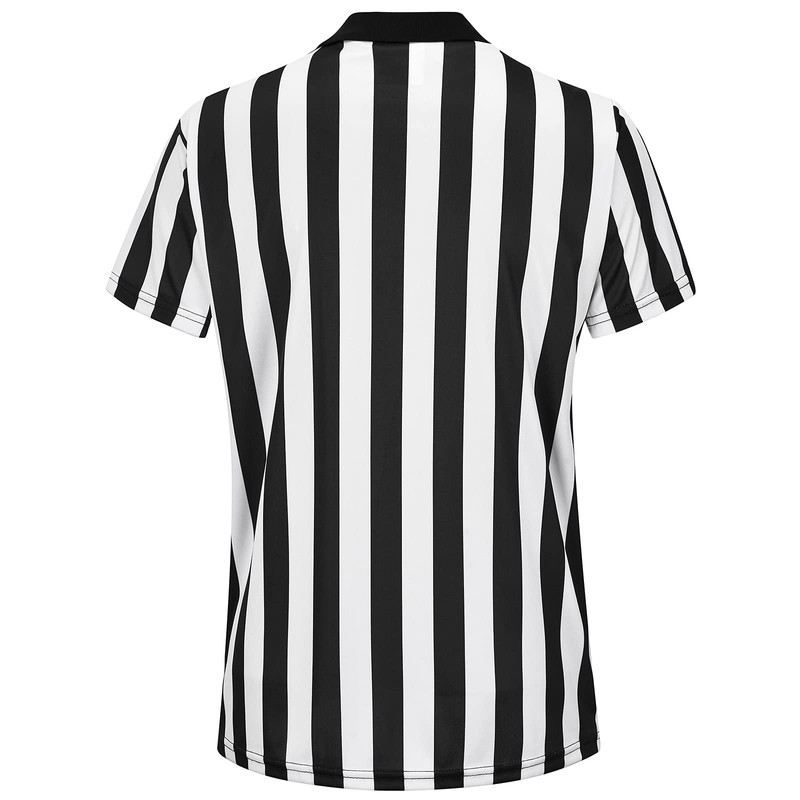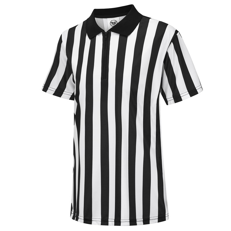 - Pro-Style: This referee costume meets standard referee shirt requirements with a vertical 1" black and white stripe design. Stretch rib v-neck & 1/4 zip turn down collar for a classic look.
