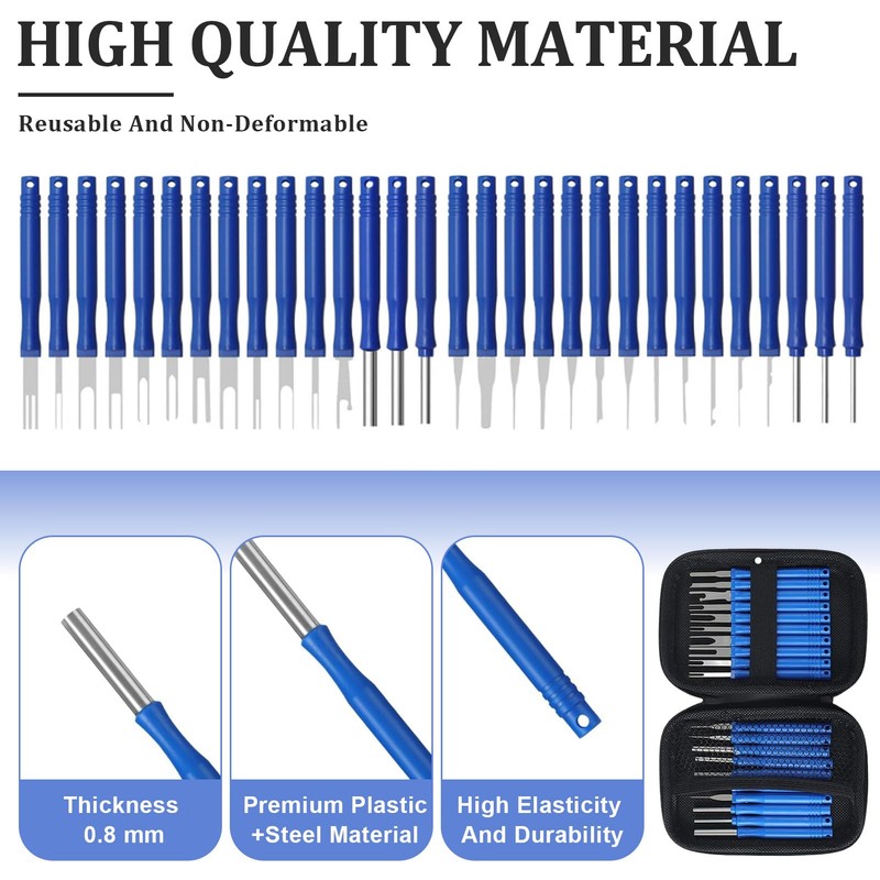 - Premium quality terminal removal kit: the release tool terminal removal tool kit is made of high-quality 201 stainless steel and hard plastic, which has excellent hardness, abrasion and corrosion resistance, high hardness, not easy to deform, and can be used repeatedly for a long time. The car pin tools are available in different sizes and are suitable for the maintenance of most electronic devices in the car, making your work more convenient.