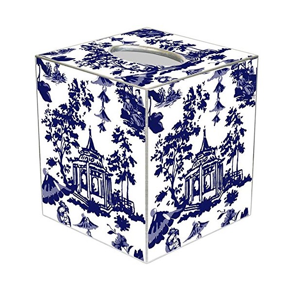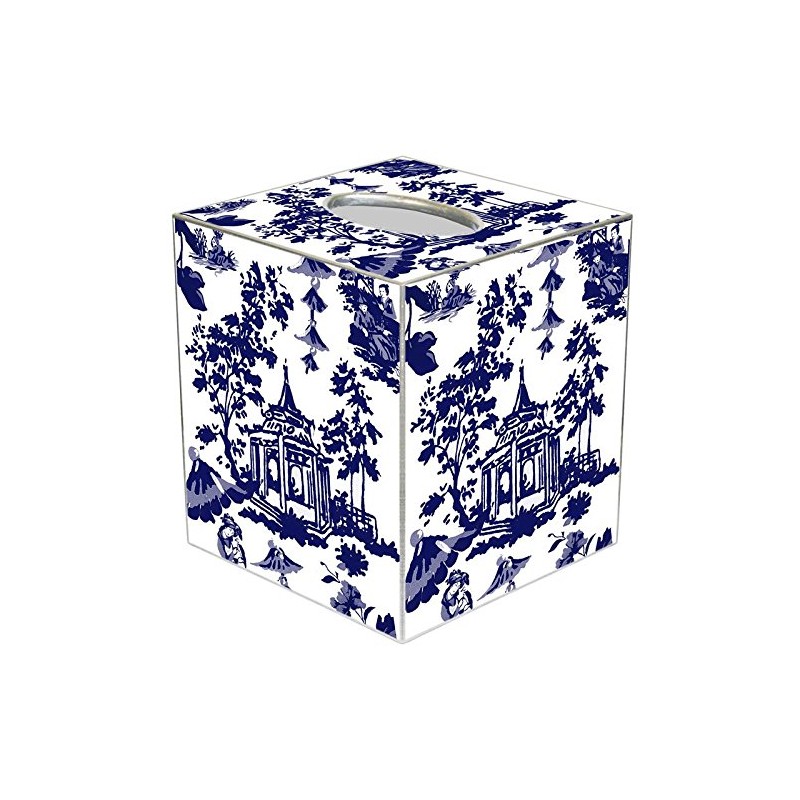 Marye-Kelley Chinoiserie Pagoda Blue Paper Mache Oriental Home Décor Handmade Tissue Box Cover