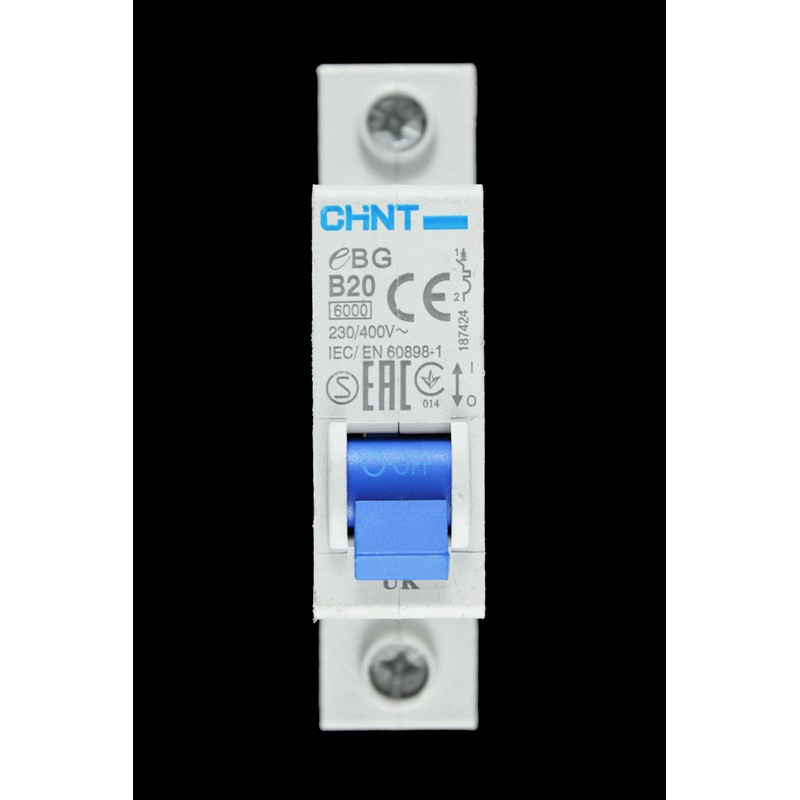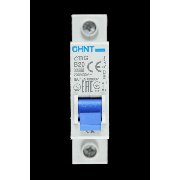 Chint EBG-1P-B20 Miniature Circuit Breaker, 20 A, 1 Pole, B Curve, 6 kA