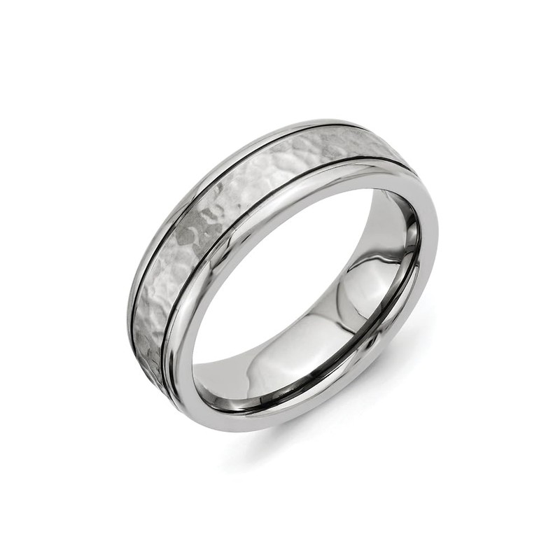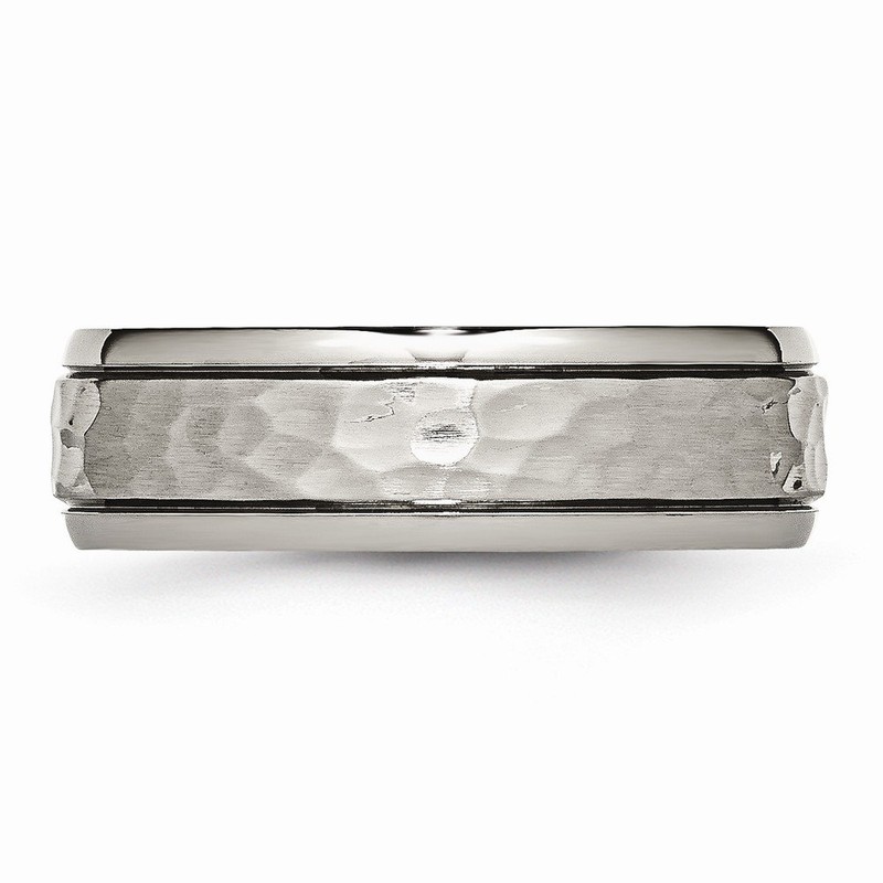 Chisel Titanium 7mm Grooved Edge Hammered and Polished Wedding Band Size 9.5