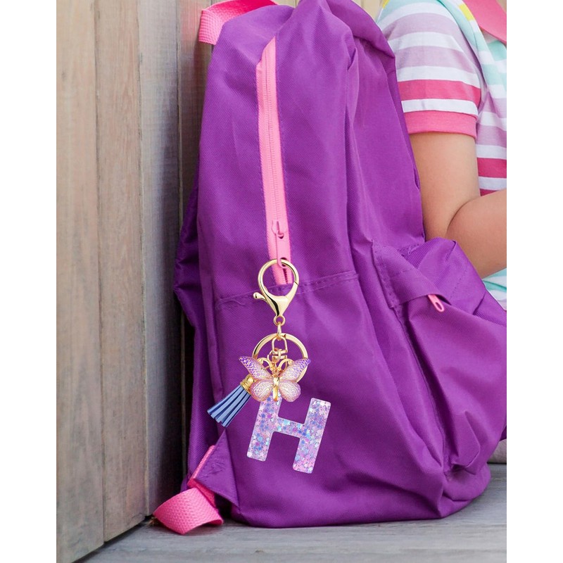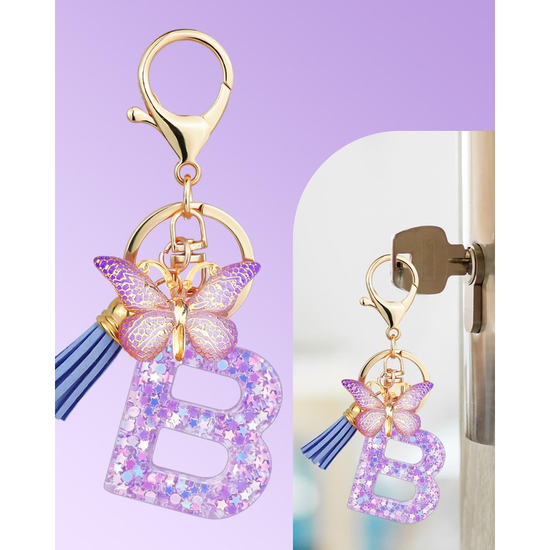 Chivixe Initial Letter Keychain for Women Tassel Butterfly Pendant Key Ring Cute Car Keychain for Wallet Backpack Bag Charm,Z01-L