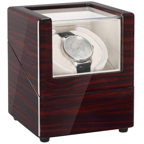 CHIYODA Single Watch Winder for Automatic Watches Solid Wooden Box with Mabuchi Motors, Battery Powered or AC Adapter