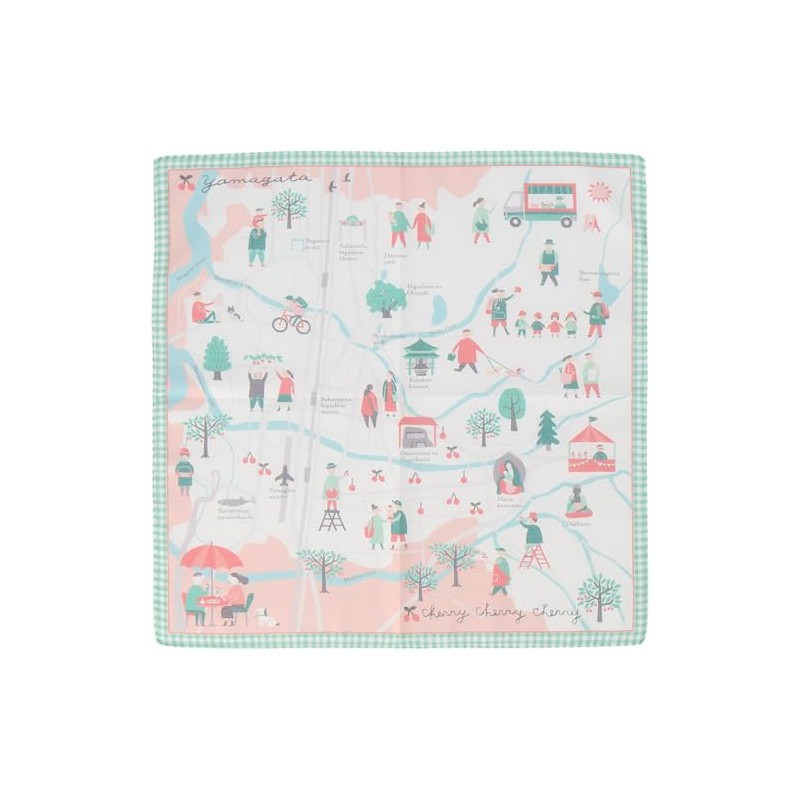Chizutabi Handkerchief Unisex Printed Handkerchief 44501501 Handkerchief Unisex 47 Japan Rediscovery Unisex Adult, Green (chevron shape: cherry)