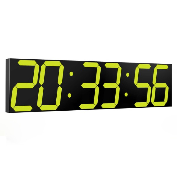 CHKOSDA Digital Wall Clock, Oversize Led Digital Clock with Auto Dimmer, Huge Countdown Timer with Remote Control, 27" Wide Led Display, 6 Digits, Wall Mount, Date and Temperature(Yellow