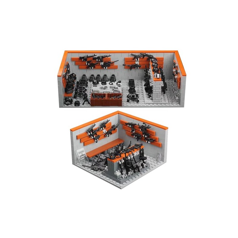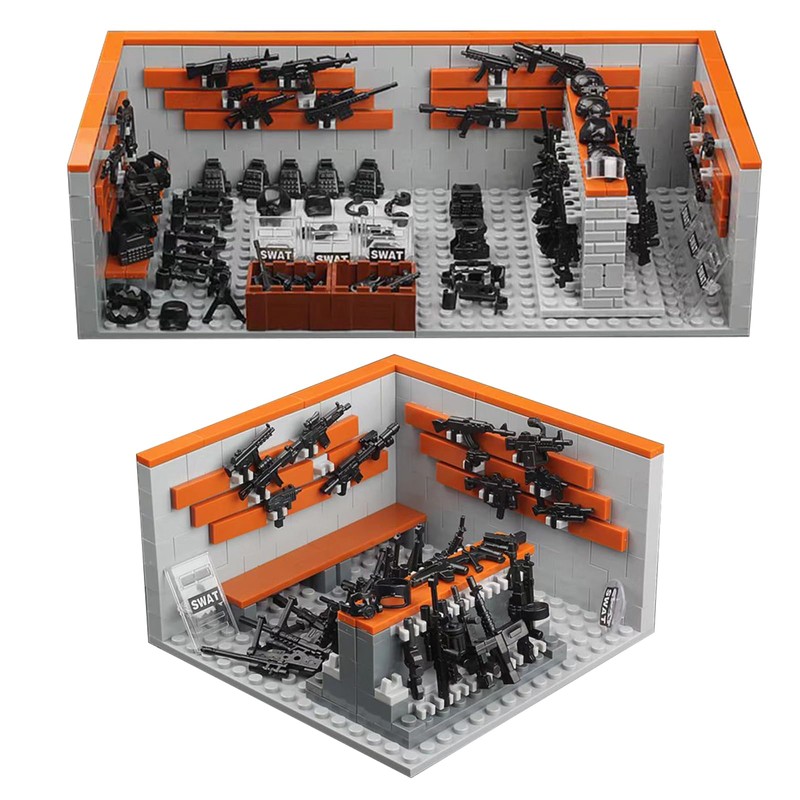 - Varity Including:This listing includes all as picture show weapons pack accessories,like Night vision device,helmet, body armor, bomb disposal suit, shield, camouflage guns and so on for police/SWAT/military.Large armory,Numerous weapon accessories.
