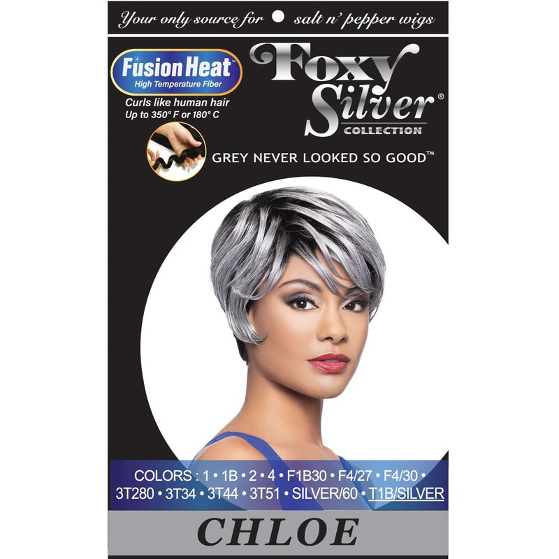- Chloe Wig Color 3T34 - Foxy Silver Wigs Short Boy Cut Straight Wispy Bangs Fusion Heat Synthetic Side Part African American Average Cap Bundle Hairloss Booklet, Comb