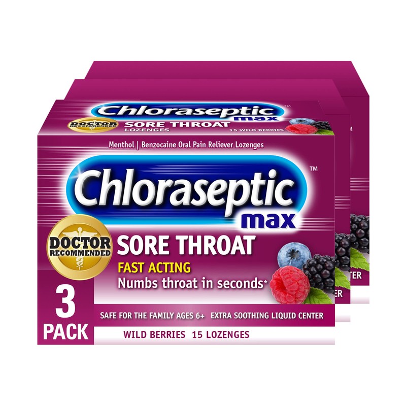 - Contains 3 boxes of Max Strength Wild Berries Sore Throat Lozenges, 15 count each