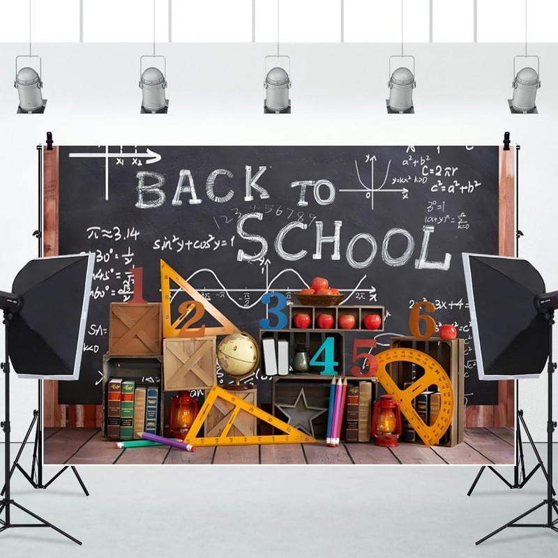 ChloropLastid 8x6ft Back to School Backdrop Math Class Blackboard Bookshelf Pencils Ruler First Day of School Photography Background Students Teachers Artistic Portrait Photo Studio Props