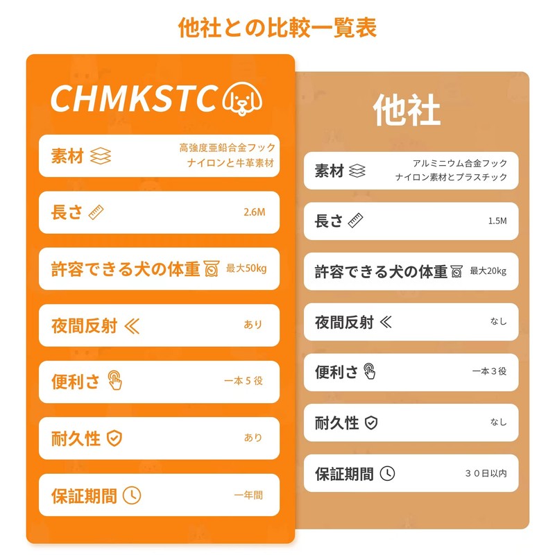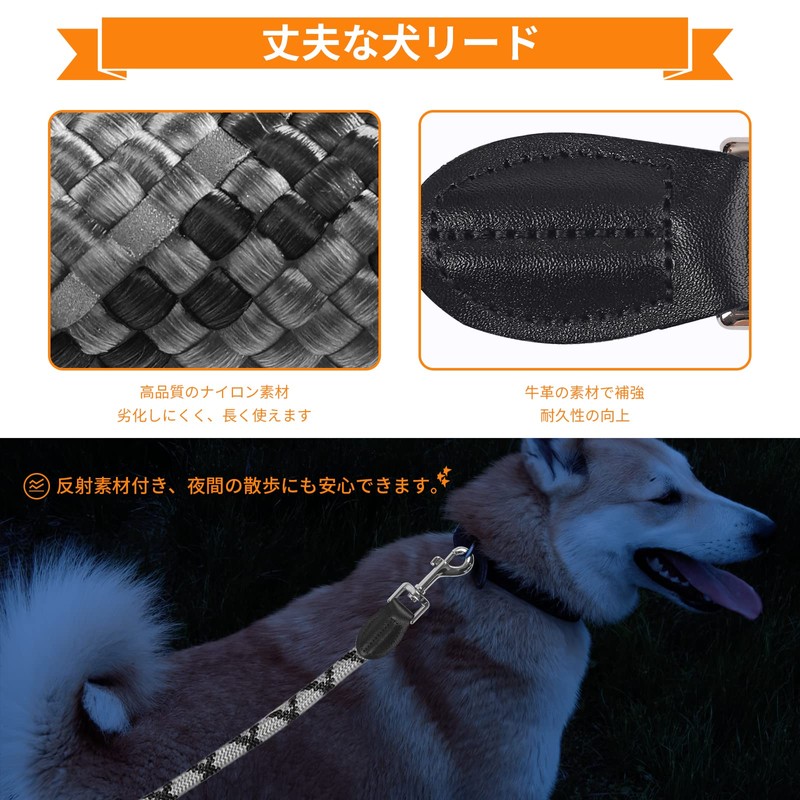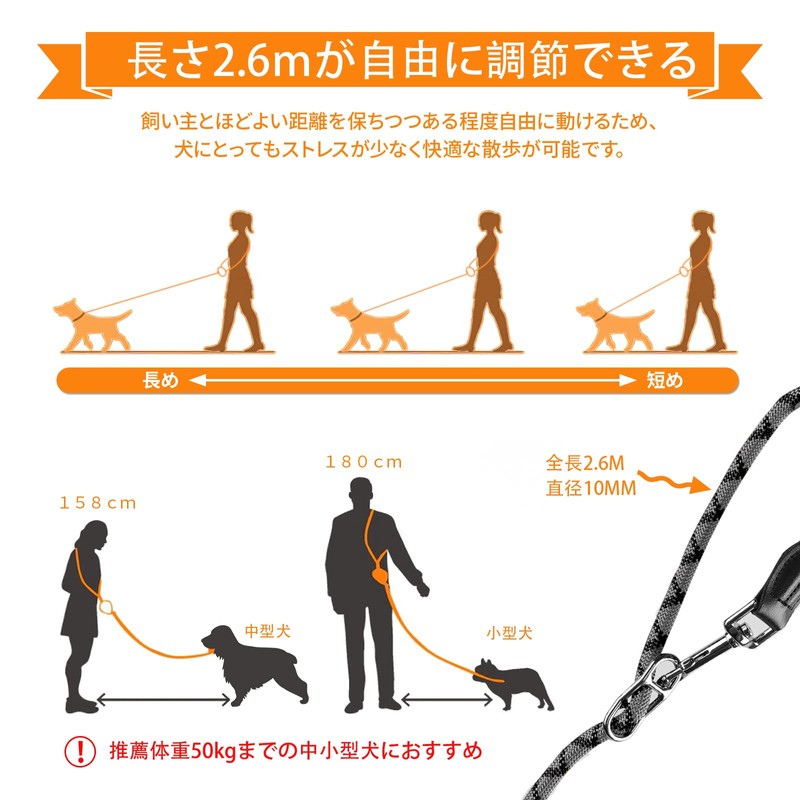 - Compatible with various dog breeds: The leash length is 8.6 ft (2.6 m) and a diameter of 0.4 inch (10 mm) / 0.5 inch (12 mm), so it can support a load of up to 332.7 lbs (16This M is recommended for small and medium dogs up to 110.2 lbs (50 kg). L is recommended for medium and large dogs with a weight of up to 354.6 lbs (160 kg). It is compatible with most breeds, so it can be used for a wide range of breeds, from small to large dogs