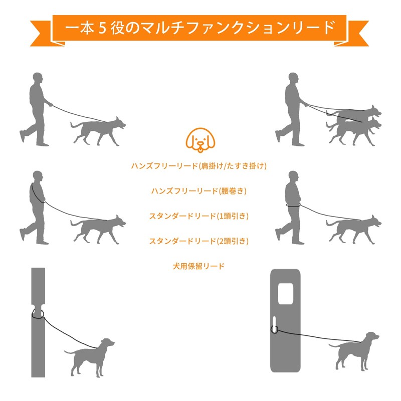 - Multi-functional leash that can be used in a variety of ways: You can also hold it in your hand or hang it on your shoulder and waist. It is convenient to keep your hands free when you want to carry your luggage. It is also recommended for people who have multiple heads as they can connect two dogs together for walks