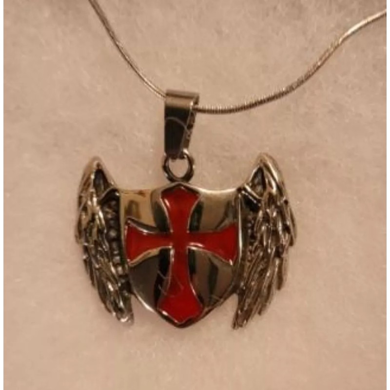 Knights Templar Shield Cross Angel Wings Pendant Necklace W/Giftbox
