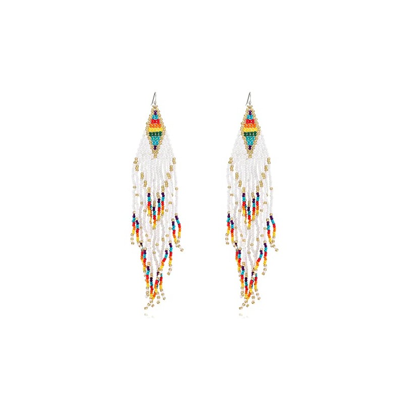 • VINTAGE NEW ARRIVAL COLLECTION - This Boho Fringe Drop Earrings coupled with the bohemian style of seed beads, will make you more fashionable. Wearing it on your body will make you feel full of fun . The earrings are 5.79 inches in length and 1.18 inches in width. 0.49 oz in weight.You can make any outfit complete with a bohemian flare simply by adding these beaded earrings for women to your look.