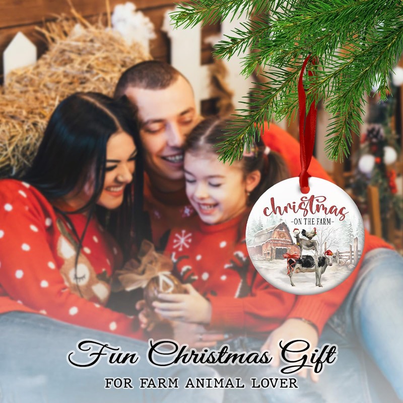 CHOANG Farmhouse Christmas Ceramic Ornaments - Holy Cow, Goat, Chicken Farmhouse Animals Decoration Hanging Tree - Merry Xmas On The Farm Ornament