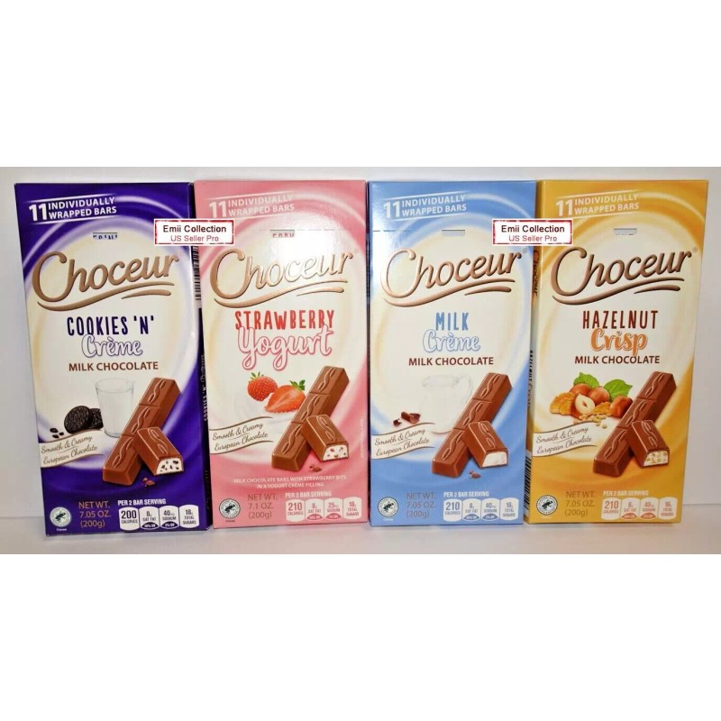 Choceur Chocolate Crisp Bar Crème, N’ Creme, Hazelnut, Strawberry 7.1oz (4 Bars)