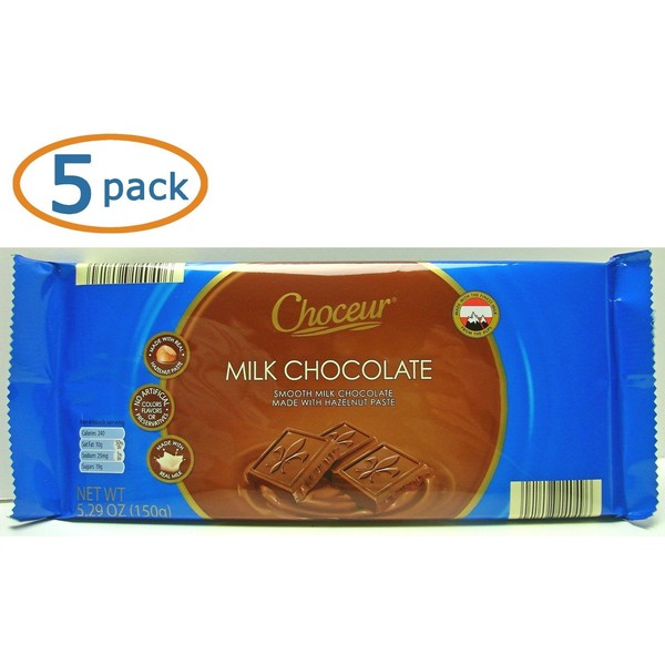 - 5 Choceur Milk Chocolate Bars, 5.29 oz each