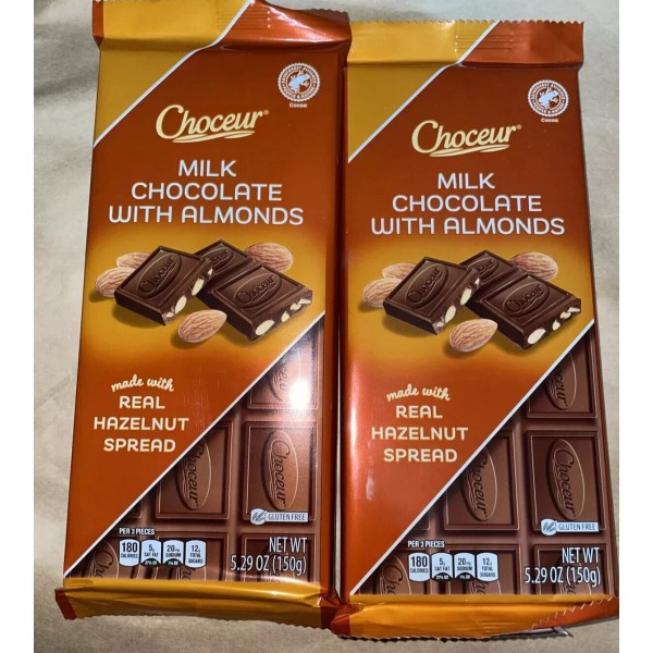 Choceur Milk Chocolate with Almonds Bars Real Hazelnut Spread 2 PACKS