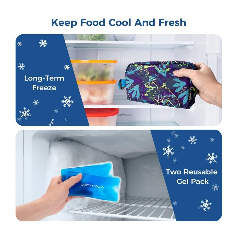 - Built-in removable ice gel pack: The removable and freezable gel packs are built into the bag. It keeps food cool all day long, eliminating the need for separate ice packs or gel packs, saving you money. You can also remove the gel pack from the snack pouch for other uses.