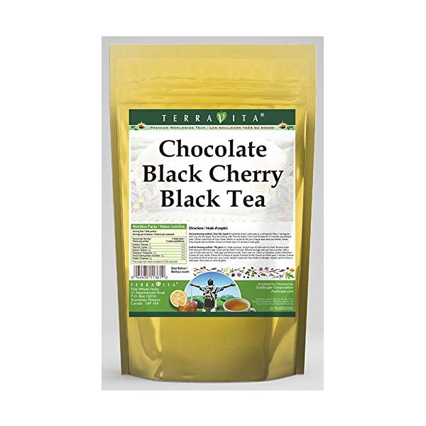 Our Chocolate Black Cherry Black Tea is a tasty flavored Black tea with Chocolate Drops, Cherries and Blackberry that has a refreshing taste that will impress you! The unique Chocolate Black Cherry taste is delicious! - Ingredients: Black tea, Chocolate Drops, Cherries, Blackberry and Natural Chocolate Black Cherry Flavor. - Hot tea brewing method: Bring freshly drawn cold water to a rolling boil. Place 1 teabag for each desired cup into the teapot. Pour the boiling water into the pot, cover and let steep for 2-4 minutes. Pour into your cup; add milk and natural sweeteners to taste. - Iced tea brewing method: (to make 1 liter/quart): Place 5 teabags into a teapot or heat resistant pitcher. Pour 1 1/4 cups of freshly boiled water over the teabags. Steep for 5 minutes. Quarter fill a serving pitcher with cold water. Pour the tea into the serving pitcher. Add ice and top-up with cold water. Garnish and sweeten to taste. - TerraVita is an exclusive line of premium- quality, natural source products that use only the finest, purest and most potent ingredients found around the world. TerraVita is hallmarked by the highest possible standards of purity, potency, stability and freshness. All of our products are prepared with the highest elements of quality control, from raw materials through the entire manufacturing process, up to and including the moment that the bottles or bags are sealed for freshness and shipped out to you. Our highest possible standards are certified by independent laboratories and backed by our personal guarantee. - TerraVita exists to meet and ensure your family's health and wellness without the harmful effects or chemicals and prescription medications. We strive to make all of our products affordable and reliable and are constantly searching the market
