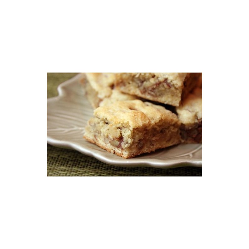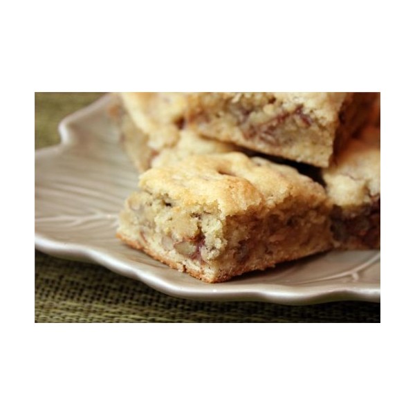 Chocolate Caramel Pecan Pie Blondies--what a great collaboration of flavors! We've always loved pecan pies with their warm, caramel flavors and crunchy pecans. That's what these blondies reminded us of. When we added chocolate, we liked them even better. These are warm and gooey like your favorite brownie but chewy and caramel-like. The chocolate is complementary, not dominating. These are pecan pie bars, not chocolate bars. We think you and your family will love these. Dense and chewy like a brownie. Loaded with pecans and splashed with milk chocolate chips. Quick and easy to make, a great cookie to make on a busy day. Each mix will fill a 9 x 9-inch pan--enough for 16 nice- sized, thick blondie bar cookies. Ingredients: Granulated sugar, enriched wheat flour (wheat flour, malted barley flour, niacin, iron, thiamin mononitrate, riboflavin, and folic acid), milk chocolate chips (sugar, cocoa butter, chocolate liquor, whole milk powder, powdered whey protein concentrate, whey powder, soy lecithin, and natural vanilla flavor ), pecan pieces, natural and artificial flavor, and salt. This product contains wheat, nuts, dairy and soy and may contain traces of egg products. Pecan pies are moist and gooey with the crunch of pecans and the taste of caramel. So are these Blondie bar cookies. We added chocolate to make them even better.