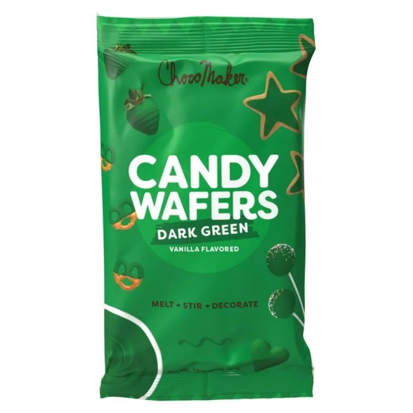 Chocomaker Vanilla Flavored Candy Wafers, Easy to Use, No Clumping, Nothing to Add, Smooth and Great for Decorating (12oz (Pack of 1), Dark Green)