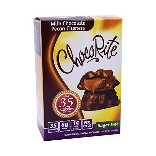 CHOCORITE CHOCOLATE VALUE PACK -6 24 GRAM BARS-SUGAR FREE-35 CALORIES PER PIECE (MILK CHOCOLATE PECAN CLUSTERS)