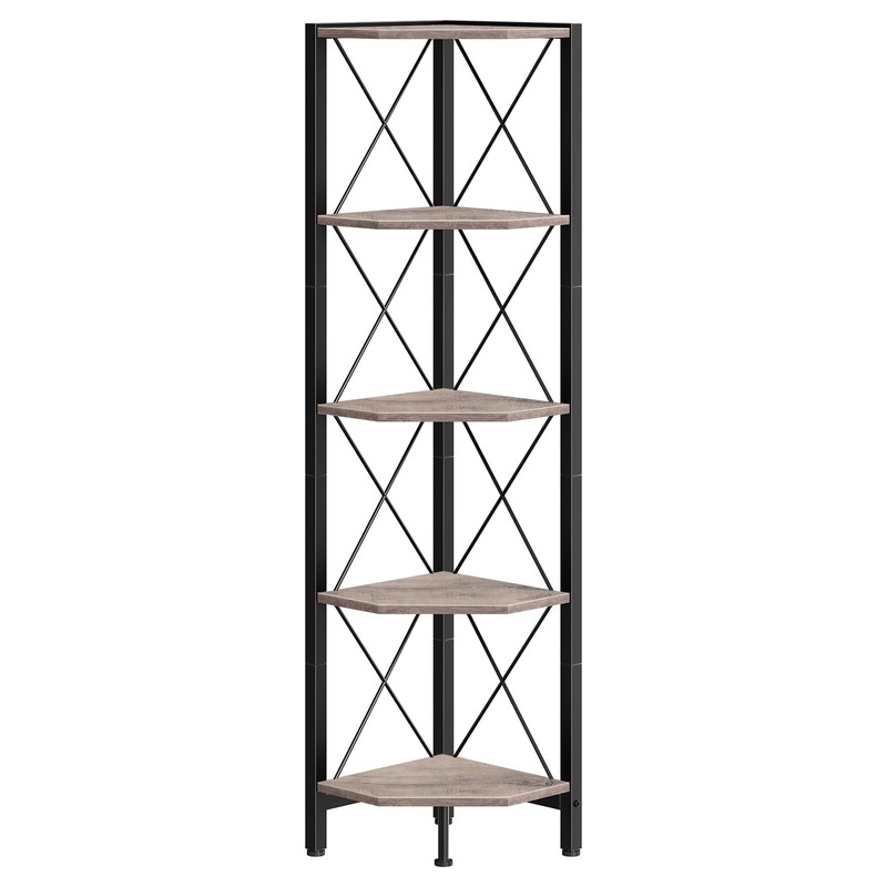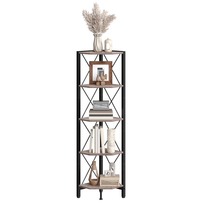 - Sturdy Construction: Crafted from sturdy particleboard and a robust metal frame, this corner bookshelf offers a reliable structure and each shelf supports up to 44 lb. The anti-tip straps and adjustable feet are included to ensure overall stability for safer use
