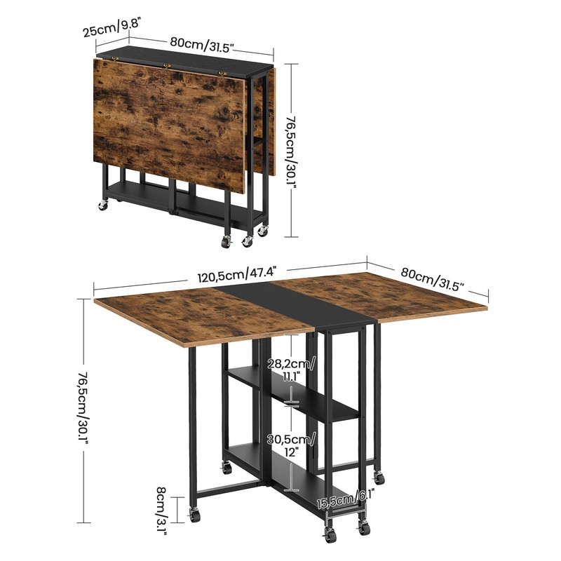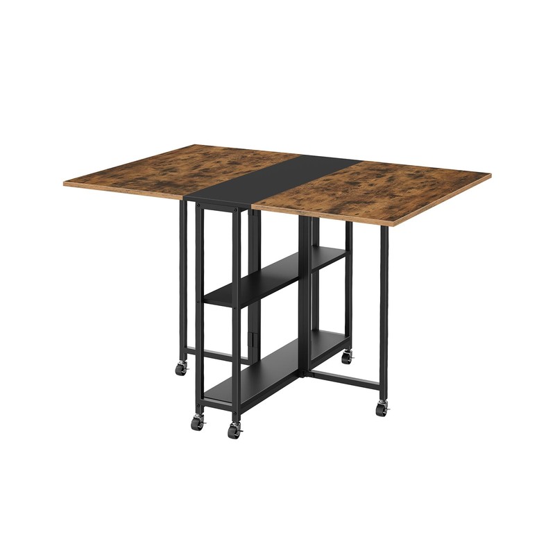 CHOEZON Folding Dining Table, Movable Dining Table, Expandable Kitchen Table, Versatile Table with 6 Wheels and 2-Tier Shelf, for Dining, Living Room, Apartment, Rustic Brown TCZ01BF
