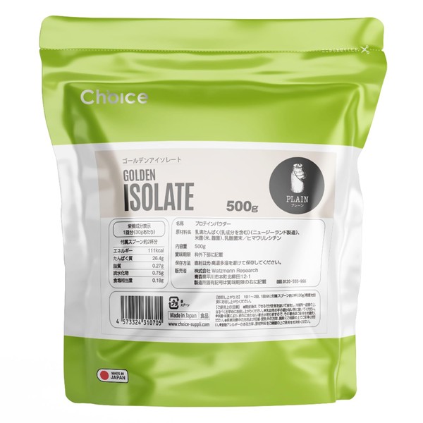 Choice ゴールデンアイソレート グラスフェッド ホエイプロテイン プレーン味 500g 人工甘味料不使用 WPI プロテイン 国内製造 天然甘味料