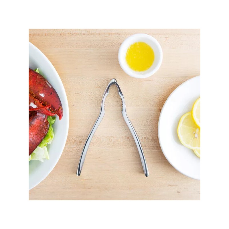 A must-have addition to any catered event, buffet, or seafood restaurant, this Choice 6 1/2" stainless steel lobster cracker will simplify tedious dining tasks. This heavy-duty double-jaw cracker allows you to clamp down and crack open lobster claws, crab legs, or crab shells with one easy motion.