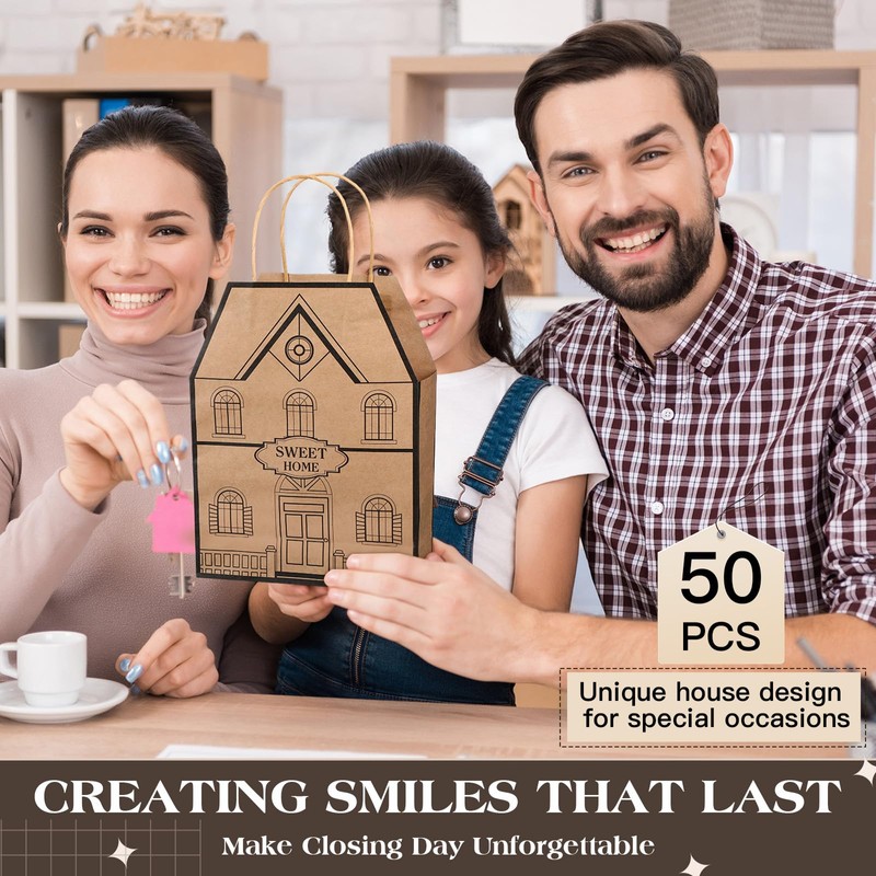 - Abundant Quantity: the package includes a generous amount of 50 house shaped gift bags; This makes it ideal for whole community connotations, extensive real estate agent gifts, or regular housewarming parties; Buy once and have enough supply for many occasions