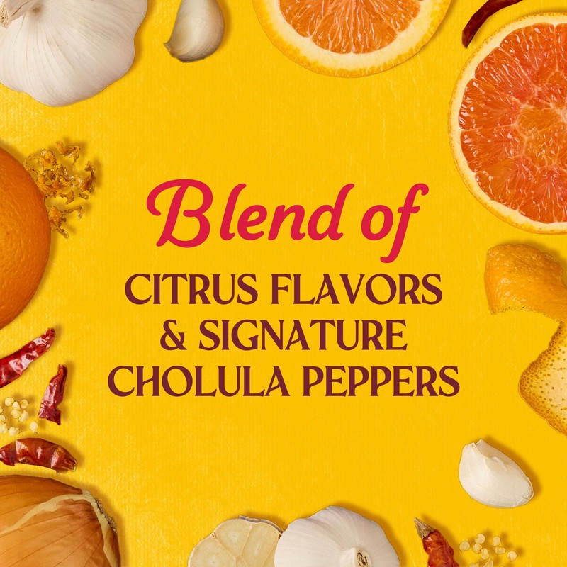 - BLEND OF FLAVORS: A savory combination of citrus flavors and signature Cholula peppers, including arbol and piquin.