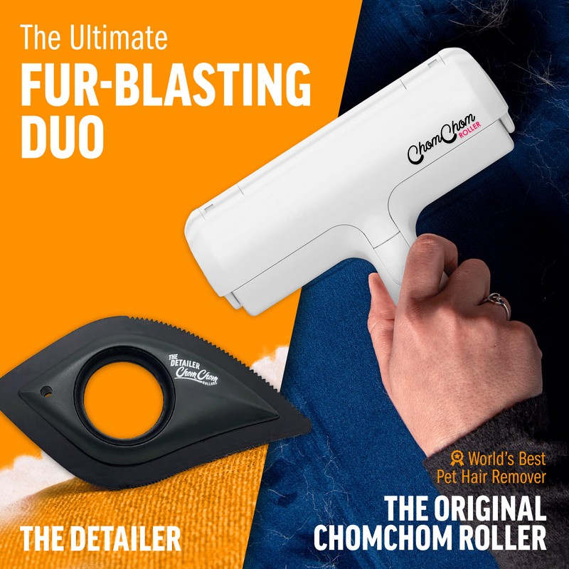 ChomChom Roller ChomChom Roller & Detailer Bundle - Pet Hair Remover and Reusable Lint Roller - ChomChom Cat and Dog Hair Remover for Furniture, Couch, Carpet, Clothing and Bedding - Multi-Surface Fur Removal Tool