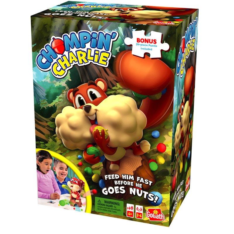 Chompin' Charlie Game - Feed The Squirrel Acorns And Race To Collect Them When They Scatter - Includes 24-Piece Puzzle by Goliath