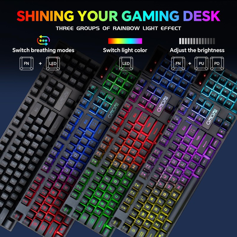 - Rainbow LED Backlit Keyboard----The rainbow LED keyboard is wireless, and has 3 brightness and breathing speeds for you to choose from. All buttons are backlit, so you can find the keys accurately in the dark. The wireless gaming keyboard has clear and uniform light transmission, and the keycap characters never fade.
