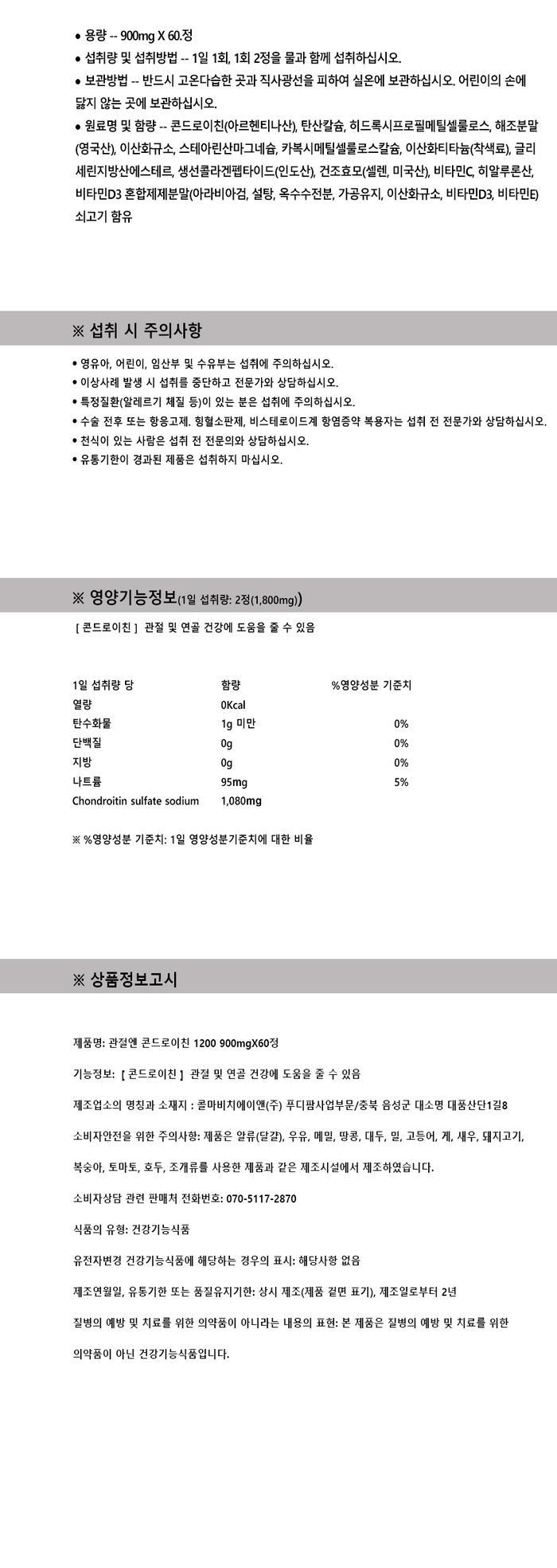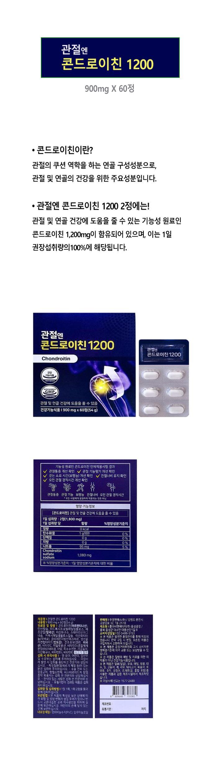 Chondroitin 1200 900mg x 60 tablets for joints, 2 units, 2 boxes / 관절엔 콘드로이친 1200 900mg x 60정 2개, 2박스