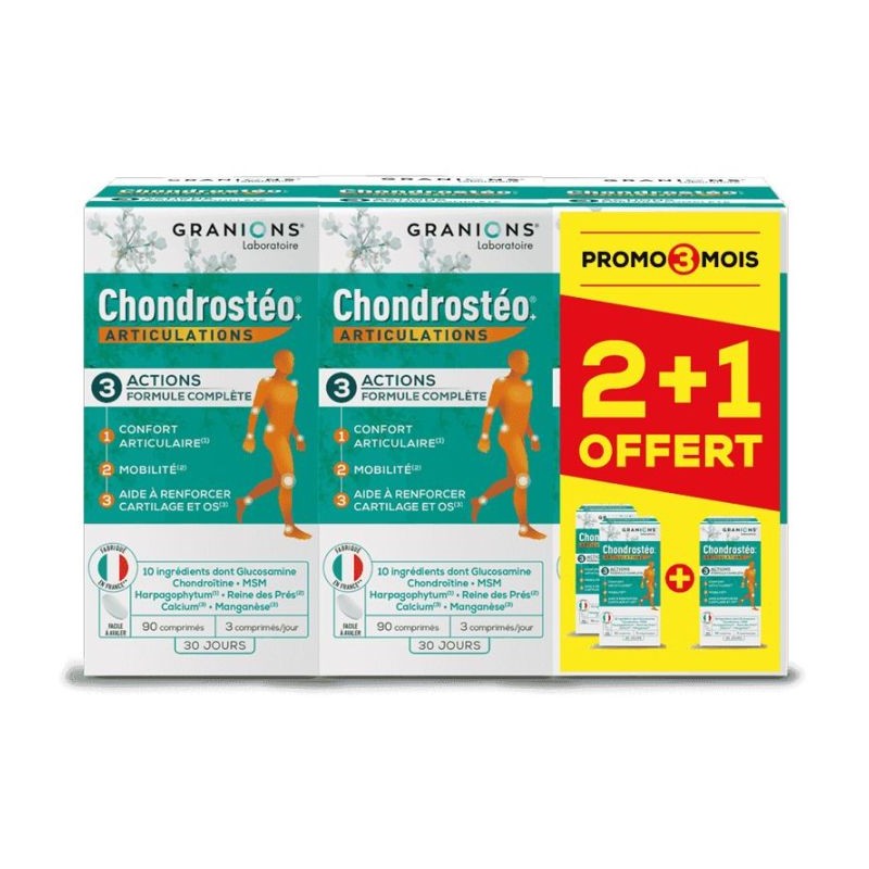 With the passage of time, advancing age, regular practice of sport, seasonal fluctuations, or simply poor posture, our joints become fragile . With this in mind to preserve our mobility and maintain our physical fitness, Chondrosteo+® is positioned as the ideal food supplement . Chondrosteo+ offers an effective fight against joint pain , relieving painful joints , lower back pain and symptoms of osteoarthritis. This food supplement has been formulated with a triple action " Mobility - Flexibility - Bone capital ", directly targeting the heart of the joints.