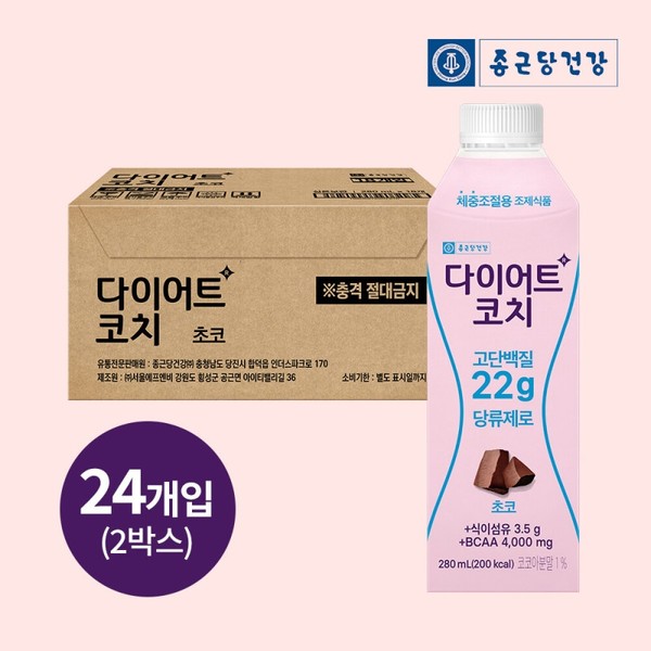Chong Geun Dang Health Diet Diet Coaching sugar with protein drink chocolate 280ml 48 pack / 종근당건강 다이어트코치 당류제로 단백질음료 초코맛 280ml 48팩