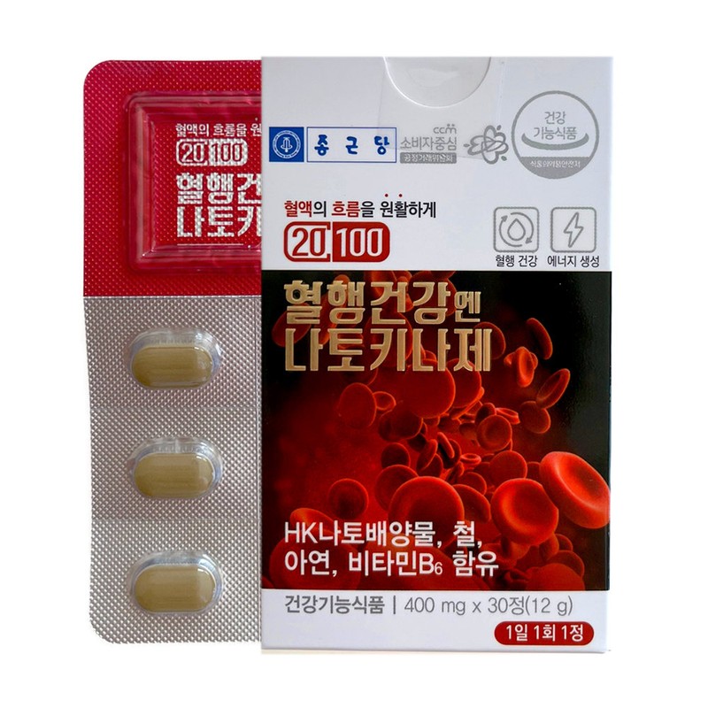 Chong Kun Dang Blood Circulation Health Nattokinase 400mg x 30 tablets / Circle / 종근당 혈행건강엔 나토키나제 400mg x 30정 / 써클