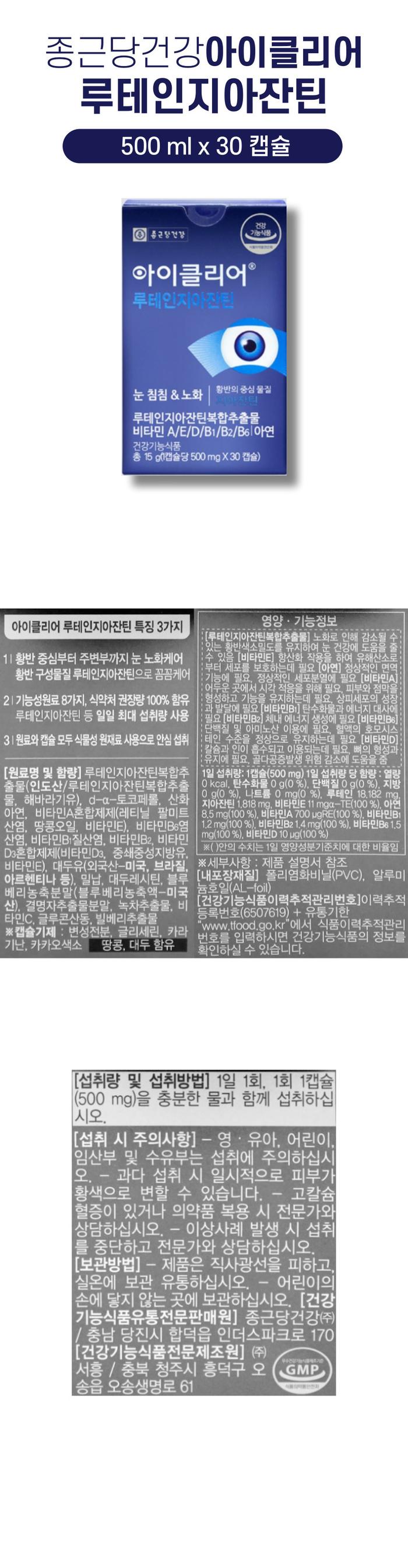 종근당건강 아이클리어 루테인 지아잔틴 30캡슐 x 6개